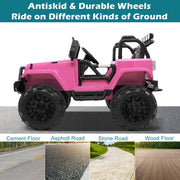 The JOYMOR 12V Kids Ride on Truck with Remote Control, Spring Suspension, Music, and Horn is the ultimate ride-on toy for your little ones. With its realistic design and cool appearance, this truck is sure to turn heads. Equipped with music and a music player, it adds an extra element of fun to the playtime experience. The easy operation allows kids to take control of the car themselves, while parents can also take charge using the remote control when necessary. This rc ride on truck brings joy and happiness to children in a safe environment, creating special memories that will last a lifetime. It's the perfect gift to ignite their imagination and let the adventure begin!Key Features:- Two Mode Control: The 2.4G remote control allows parents to operate the toy truck, ensuring safety with 3 adjustable speeds, parking, and forward and reverse modes. Kids can also drive manually, and the car stops on the release of the foot pedal. It offers a safe and adventurous ride with speeds ranging from 1.75 to 3.7 miles per hour. The remote control can overpower and stop the car anytime, giving parents peace of mind.- Upgrade Wider Seat: The JOYMOR ride-on truck is equipped with an upgrade wider soft seat, measuring 15.8 inches in width. It also features adjustable safety belts to keep your child secure during their playtime adventures. The rubber traction strips on all tires provide excellent grip, while the spring suspension system greatly reduces shock, allowing your child to fully immerse themselves in the joy of driving.- Stylish Appearance: This ride-on truck features two bright LED headlights that illuminate the way, making your child's driving experience even more exciting. The double lockable doors and grid windshield add a sleek and sporty touch to the overall design. Your little one will stand out from all the other kids in luxury as they cruise around in their very own truck.- Powerful Battery: The 12 volt battery of this ride-on truck is fully charged and able to last for one to two hours of run-time. To ensure optimal performance, it's recommended to charge the battery for 24 hours before its first use and continue to charge it for up to 8 hours when needed. This ensures that your child can enjoy extended playtime without interruptions.Specifications:- Color options: Pink, White, Black, Red, Blue, Green- Seat Width: 15.8 inches- Seat Depth: 8.7 inches- RC Mode: 3 Speeds Options- Maximum User Weight: 66lb / 30kg- Speed: 3-6 KM/H (3.7mph max)- Charge Time: 8-12 Hrs.- Run Time: 1-2 Hrs.- Wheels: 14 inches (Dia) Each- Battery Type: 12V 7AH- Controller Battery: 2 x AAA Batteries (not Included)- Overall Dimensions: 47.2 x 31 x 31 inches (L x W x H)Package Includes:- 1 x Electric Car- 1 x 2.4G Remote Control- 1 x Charger- 1 x ManualThe JOYMOR 12V Kids Ride on Truck with Remote Control, Spring Suspension, Music, and Horn is carefully crafted with safe materials and certified by ASTM F963. It serves as a worthy gift for your kids, providing them with endless hours of fun and adventure. Whether it's indoor or outdoor play, this electric ride-on guarantees great reliability and will be a perfect companion for your little ones. Get ready to watch their imaginations soar as they embark on thrilling journeys in their very own ride-on truck.