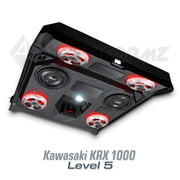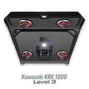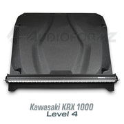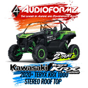 Introducing the AudioFormz roof top stereo system, expertly engineered for the Kawasaki Teryx KRX1000. Aligning with Kawasaki's renowned build quality, reliability, and functionality, this stereo top sets a new standard in off-road audio systems. Constructed from solid hand-laid molded fiberglass, it stands as one of the lightest yet most robust stereo tops available, enhancing your Teryx KRX1000 with unmatched durability and sound.