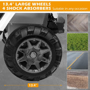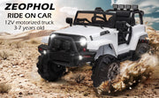 Introduce Your Little One to the Ultimate Ride-On Adventure Imagine the joy on your child’s face as they zoom across the driveway, wind in their hair and laughter trailing behind. The 46.5" Kids Ride-On Car Jeep by ZEOPHOL isn’t just another toy—it’s a carefully engineered, adventurous mobile companion that transforms ordinary playtime into an exhilarating off-road quest. Designed for children ages 3 to 7, this ride-on jeep delivers safety, durability, and imaginative fun in one sleek, white package. Why Parents Love It Built-In Peace of Mind: A sturdy steel frame and high-grade PP body keep your little explorer secure on every adventure. Child-Safe Performance: Soft-start technology prevents sudden jolts, while a reliable spring suspension system smooths out bumps for a comfortable ride. Easy Maintenance: Plastic wheels never go flat—so you can spend less time fixing tires and more time cheering on your kid. Key Benefits for Kids and Parents Imagination Unleashed: Let your child take on the role of a jungle explorer, race car driver, or everyday hero navigating suburban streets. This ride-on truck becomes the stage for every story they create. Confidence Booster: Two driving modes grow with your kid. Start with the 2.4GHz parental remote control, then hand over the wheel when they’re ready to steer themselves. Active Play: Encourage outdoor time and healthy movement. Riding this little jeep strengthens coordination, balance, and motor skills. Engineering Highlights Powerful Dual Motors: Two 12V motors deliver speeds from 1.9 to 3.7 mph—enough thrill without overwhelming a young driver. Long-Lasting Battery: A 12V 7Ah rechargeable battery provides up to 60 minutes of continuous play. Simply charge for 8–12 hours overnight, and the jeep is ready to roll again. Large 13.4" Wheels: Oversized tires and independent shock absorbers tackle grass, gravel, and pavement with ease. Safe & Durable Design Seat Belt Restraint: A simple but effective safety belt keeps your child secured in the seat during every twist and turn. Lockable Doors & One-Button Start: Realistic details help kids feel in control while preventing accidental door openings or starts. Non-Slip Surfaces: Textured footwells give little feet extra grip and stability. Entertaining Features Built-In LED Lights: Bright headlights and rear lights add a dash of realism and extend the fun into the dusk hours. Music & Audio: An integrated MP3 player, USB port, and preloaded tunes let your child curate the soundtrack to their ride-on journeys. High/Low Speed Settings: Adjust the pace to match your child’s comfort level, from gentle cruising to a brisk sprint. Thoughtful Details Easy Assembly: Arrives in two boxes with clear instructions—just follow the steps and you’ll have the ride-on car ready in minutes. Portable Handle: When the battery runs low, pull out the built-in handle and wheel the jeep into the house without lifting heavy parts. Weather-Resistant Materials: Durable plastics and rust-resistant iron components stand up to sun, wind, and the occasional puddle. Perfect Gift for Every Occasion Whether you’re celebrating a birthday, holiday, or simply want to surprise your child, the ZEOPHOL ride-on car is an unforgettable gift that keeps on giving. It offers hours of independent play, encourages outdoor exploration, and becomes a cherished keepsake long after your little one has outgrown it. Product Specification (White Variant) Overall Size: 46.5" L × 31" W × 29" H Seat Dimensions: 15" W × 7.9" D Recommended Age: 3–7 years Maximum Load: 66 lbs Materials: PP body, iron frame, PP wheels Battery: 12V 7Ah rechargeable Charge Time: 8–12 hours Run Time: Up to 60 minutes Motors: 12V × 2 Speed Range: 1.9–3.7 mph Wheel Diameter: 13.4" What’s in the Box? 1 × Ride-On Car Jeep (white) 1 × Charger 1 × 2.4GHz Remote Control 1 × User Manual Ready to Roll You’re just minutes away from watching your child explore their neighborhood, backyard, or local park in true off-road style. Add the ZEOPHOL 46.5" Kids Ride-On Car Jeep to your cart today and give the gift of unforgettable adventures. Because every kid deserves a safe, reliable ride-on that sparks creativity and fuels endless fun!