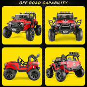 The Kids Electric Jeep 24V with Remote Control, LED Lights, MP3, and USB is the ultimate ride-on toy for adventurous boys and girls. With its realistic appearance and high-performance 24V 2x200W Motor, this Funcid kids ride-on car is designed to ignite the spirit of adventure in your child. Safety is a top priority with features such as soft start and soft brake technology, electron-assisted steering, and an auto-reset overheat protector. The reinforced seat belt and lockable doors ensure your child's driving experience is safe and comfortable. Let's dive into the key features and specifications of this amazing ride-on car: Key Features: Safety Guarantee: Certified by ASTM & CPSIA, this ride-on car is equipped with soft start and soft braking function, electron-assisted steering, and an auto-reset overheat protector. It also has a parent remote control priority, reinforced seat belts, lockable doors, LED searchlight, metal suspension, high chassis design, and EVA explosion-proof wheels. Made of high-quality non-toxic PP material, it ensures your child is away from any danger. 2-Seater MAX SPACE: Designed with 2 spacious seats, this ride-on car allows two kids aged 1-4 years and 3-8 years to drive together. It also comes with a safety belt to provide protection for your kids. The 4PCS 14" EVA wheels equipped with a strong metal suspension system can bear a maximum load of 130 lbs. 24 Volt with 2X200W Motors: Equipped with a 24V battery and 2PCS 200W motor, this ride-on car provides more powerful driving ability than the 12V version. The large battery can last up to 120 mins of uninterrupted driving with a full load. The soft start function intervenes in work to avoid the risk of sudden acceleration or braking, ensuring your kids' safe driving. It can reach speeds of up to 4.9 mph in forward mode. Two Driving Modes: This car offers dual driving modes - parental remote control and kids manual operate. The power steering system and independent bearings on each wheel make the steering smoother. The large full-metal suspension provides better shock absorption, allowing your kids to drive on various rough terrains and have a great driving experience. Multiple Functions Ride for Fun: All functions are centrally controlled. The high-bright LED headlights, tail lights, and searchlights make your child feel super cool when driving at night. The ride-on vehicle is already assembled with built-in music, MP3, USB port, and AUX port, providing a great number of music options for your kids. Specifications: Color: Red / Pink / Black / Green Recommended Age: 3-8 years Material: PP and ABS plastic, Metal Battery Type: 24V 9AH Motor Type: 200W*2 Suspension: Full-Metal Suspension Seat Size: 18 inch Wheels Size: 14 inch Maximum User Weight: 130 lbs Safe Speed: 1.8-4.9 mph Charging Time: 8-12 hours Run Time: 100-120 minutes Music Function: AUX & USB port / Bluetooth / MP3 / Built-in music Overall Size: 48.5 inch x 34.7 inch x 31.5 inch This Kids Electric Jeep 24V with Remote Control, LED Lights, MP3, and USB is the ideal gift for your child's birthday or holiday. It comes in four vibrant colors - Red, Pink, Black, and Green. Please note that due to logistics restrictions, this product is delivered in two packages. After receiving the two boxes, you can contact us for an installation video to prevent any damage during assembly. Surprise your child with this cool kids truck and let them embark on exciting adventures!