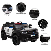 Kids Police Ride On Car with Remote Control and LED Lights - 12V Electric Vehicle