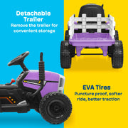 Kidzone 12V Electric Tractor with Trailer and LED Lights, Bluetooth Connectivity for Kids