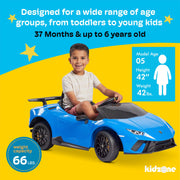 The Kidzone Kids 12V Electric Ride-On Car is the ultimate toy for adventurous young drivers. With its vibrant blue color, this ride-on car is sure to catch the eye and provide hours of entertainment. Whether your child is zooming around the driveway or exploring new terrain, this electric vehicle toy will bring them full enjoyment.This Lamborghini-inspired remote control ride on features a realistic design with openable doors, allowing your child to feel like they're stepping into a real car. The electric foot pedal and forward/backward gear give them full control over their ride, while the steering wheel allows for easy maneuverability. The bright LED front lights add an extra touch of excitement, making this ride-on car truly stand out.But the fun doesn't stop there. The Kidzone Kids 12V Electric Ride-On Car offers two modes of operation. The parental 2.4G wireless remote control allows parents to take the wheel and ensure their child's safety. For older children who want to experience the thrill of driving on their own, the manual operation mode is perfect. With two speeds in both R/C mode and manual mode, your child can choose the level of excitement that suits them best.This ride-on car is designed for children aged 3-8 years, with a maximum user weight of 66 lb (30 kg). It is powered by a 12V*5 motor and comes with a charger that has an input of 120V AC, 0.25 A, 60 Hz, and an output of DC 12V. The battery charge time is 8-12 hours, ensuring that your child has plenty of time to enjoy their ride-on car. With a speed range of 0.6-1.9 mph (1-3.1 km/h), they can cruise around at a safe and enjoyable pace.The Kidzone Kids 12V Electric Ride-On Car comes in a vibrant blue color, but it is also available in five other colors: black, pink, red, white, and yellow. Made of high-quality plastic, this ride-on car is built to last and withstand the adventures of young drivers. It includes a package with one kids ride-on car, one charger, one remote control, and one instruction manual.Choose the Kidzone Kids 12V Electric Ride-On Car for your child's next adventure. Let them experience the thrill of driving their very own car, all while ensuring their safety with the parental remote control. With its realistic design, bright LED lights, and two modes of operation, this ride-on car is sure to provide endless fun and excitement. Order yours today and watch your child's imagination soar.