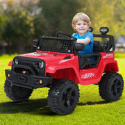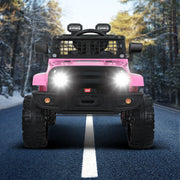 The Kimbosmart 12V Kids Ride On Truck Car with Remote Control and 3 Speeds - Perfect Gift for Little Drivers If your child desires a stylish and funny personal truck ride-on, this is the one to go for. This fantastic 12V electric kids remote control ride on toy car offers a realistic driving experience for your kids, just like a real electric car with a 2.4G parental remote control, a horn, car mirrors, LED lights, and an MP3 player. Let's get those kids out and rolling with their own 12V Ride on Truck! About this item Remote control: Parents can control this ride-on car through the 2.4Ghz remote control to enjoy the happiness of being together with babies. The remote control has priority control. Manual operate mode: Children will be proficient in using the pedal and steering wheel to operate their own electric car, which helps to improve their independence and practical ability. Perfect Gift: The ride-on car is an ideal birthday gift or Christmas gift for your kids. Choose it as a companion to accompany a child’s growth and enhance their independence and coordination. Realistic Appearance: This 12V ride-on toy car with an adjustable seatbelt, lights, horns, MP3, lockable door, grid windshield, speed switch, and more, can give your kid a feeling of driving a real car. Spring damping system: The suspension system ensures a smooth and comfortable ride, preventing children from being frightened by sudden acceleration or braking, ideal for a ride in a smooth or rough way. Connect Your Music: Equipped with an MP3 player, USB port, built-in AUX outlet, able to connect your device to play music and stories, helping children grow while being entertained. Premium Material: The ride-on car has four wear-resistant wheels made of superior PP materials with no possibility of leaking or tire burst, eliminating the hassle of inflating. Easy Assembly: This kids ride-on car is easy to assemble, and you can easily assemble it according to our instruction manual. Assembled size is 39"(L) x 26"(W) x 26"(H). Excellent Customer Service: If you have any questions about our electric ride-on truck, feel free to contact us. Our professional customer service team will solve your problem within 24 hours. Specifications Color: Red, Pink, White, Black Material: PP and Iron Rechargeable Battery: 12V 4.5Ah Motor: 25W*2 Charging Time: 8~12 hrs Driving Time: 1~2 hrs (Depend on kids weight and speed) Speed: 2-4 KM/h RC Mode: 3 Speeds Manual Mode: 2 Speeds Weight Capacity: 61.7 lbs Suitable age: 37-72 months Dimensions: 39"(L) x 26"(W) x 26"(H) Package Includes Electric Car x 1 Remote Control x 1 Charger x 1 User Manual x 1 DIY Sticker x 1