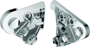A great looking replacement for the stock painted footpeg mounts. Kuryakyn's chrome units look awesome with their pegs and Boomerang Frame Covers.
