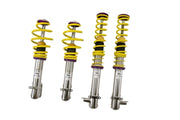 The KW V1 INOX-LINE coilover kit is our entry point into our street performance lineup. The high-quality INOX-LINE stainless steel coilover struts, corrosion resistant springs, bumps stops and dampers that are optimally tuned by our engineers the result is a balanced and sporty feel specific to each vehicle application designed for long lasting driving pleasure. With KW V1 coilovers you can achieve maximum lowering within an approved lowering range that ensures a proper functioning suspension and adequate travel after your car is lowered. Even after years of use you can easily adjust the ride height thanks to the dirt resistant trapezoid thread and composite adjustment collar. KW INOX-LINE coilover rewards the sporty driver with its harmonious pre-configured setup. For each vehicle our engineers develop a specific damper setup and spring rate to increase the driving pleasure with an optimal balance of sportiness and practicality. As with all KW coilovers, the engineers at KW develop the vehicle-specific KW damper tuning and spring rates with comprehensive testing on the N?rburgring Nordschleife and in the KW 7-post chassis dynamics test center. Unlike a mass produced, generic coilover kit, KW coilovers are developed specifically for your vehicle. As a manufacturer, KW uses only its own resources, high quality components and the damper technology that was all developed in-house. With the KW V1 coilovers, body roll will be reduced during compression giving you the benefit of a more genuine and direct sporty handling while driving.
