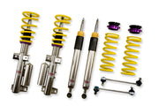 Cutting-edge motorsports technology for more performance on the road. Like every suspension product developed by KW automotive, the suspension manufacturer, and manufactured in Germany, the KW V3 Coilover suspension kit also provides a significant plus in safety reserves in road traffic. Thanks to the chassis with its high-quality dampers, springs, and elastomer spring elements, pitching and rolling movements during load changes such as evasive maneuvers, cornering, acceleration, and braking are significantly reduced. The braking distances are also shortened. Thanks to improved support and feedback, drivers not only feel safer but driving in everyday life becomes even safer. With compression and rebound stage damping, that can be set separately and independently of each other, the damper setup can be customized to your personal driving preferences or vehicle changes such as weight, tire characteristics, or altered vehicle rigidity. True performance optimization is only possible with this unique, patented system. For example, this allows the compression damping force to be increased and get more grip from the tires, to improve cornering behavior and reduce squat without simultaneously altering the rebound stage damping which is optimally matched to the spring rate, a scenario which results in reduced grip and the associated loss of performance. The KW V3 coilover kit is the ideal tool for performance-oriented drivers and experienced tuning enthusiasts who place a strong emphasis on the overall performance of their suspension. The Variant 3 features patented TVR-A and TVC-A technology that provides separately adjustable rebound and compression damping. The extensive adjustment range of the independently configurable rebound and compression make it easy to directly influence the steering behavior, directional stability, grip and handling characteristics for confident and repeatable results at the limit of driving dynamics.