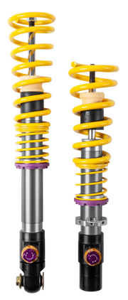 KW V4 coilovers are a combination of our innovative, race proven technology, as well as decades of experience tuning high end sports cars, super sedans and exotics such as the Audi R8, Audi RS6, BMW M5, Lamborghini Aventador LP 750-4 SV, Dodge Charger SRT Hellcat, Mercedes AMG GT and more. In addition to the individually adjustable ride height the KW V4 coilover kit allows an independent Adjustment -f the rebound damping as well as the low-speed and high-speed compression damping. Each KW V4 coilover kit is delivered with a vehicle-specific comfort setting and with the integrated Adjustment -controls the damping characteristics can be set quickly and intuitively transformed to an optimized performance setup. The 3-way adjustable high-performance dampers in the KW V4 coilover kits feature independent Adjustment -f the rebound damping utilizing patented TVR-A technology, as well as the low speed and high speed compression damping utilizing TVCLH-A technology. The KW V4 coilovers are based upon successful race technology utilized by multiple overall winners of the ADAC Zurich 24h Nurburgring race. The new KW V4 coilovers are exclusively developed for select high-performance vehicles, which benefit greatly from the KW suspension technology -o improve their driving dynamics.