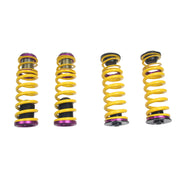 KW (H.A.S) Height Adjustable Spring kits are a great alternative to conventional lowering springs. You are no longer stuck with a fixed lowering height. KW H.A.S. systems allow you to adjust the vehicle ride height with the KW height adjuster even after the kit has been installed. Your vehicle not only gets a more dynamic look, but also the steering behavior and response of the standard dampers becomes more agile. All driver assistance systems and comfort features of a factory adaptive or electronic suspension remain operational and work harmoniously with our vehicle specific spring set up. KW uses high-quality springs made of chrome-silicon steel with spring rates designed specifically for each respective OE suspension damper and wheel load. KW's expertise and engineering ensure the spring rates will pair perfectly with the different damper characteristics of your factory adaptive electronic suspension. Along with the use of high quality materials and the included KW ride height Adjustment - mechanisms, our KW H.A.S. kits always includes the vehicle-specific bump stops with dust protection system to protect your factory suspension against wear & tear caused by road grime and debris. Similar to a coilover suspension, the KW H.A.S kit allow a continuous adjustable ride height within a tested range, something not possible with conventional lowering springs. The dust protection elements and spring perches included in the delivery, when applicable, are always adjusted to the maximum technically possible lowering, typically limited by the factory dampers. With KW height adjustable springs, a sporty and harmonious driving behavior can be achieved without the driving dynamics of performance-oriented vehicles suffering. As with all KW suspension products our engineers develop vehicle specific parameters and spring specifications which undergo comprehensive testing on the Nurburgring Nordschleife and in our KW 7-post Driving Dynamic Test Center.