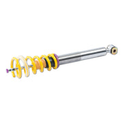Is your factory sport suspension too firm? Do you want a sporty look and driving dynamics without having to compromise comfort? KW V2 comfort coilovers take the already stellar ride and reputation of KW suspensions coilover systems to the next level of comfort. Designed specifically to maximize comfort KW V2 Comfort coilovers provide a subtle lowering with adjustable ride height and rebound damping adjustability allowing the handling or the comfort to be individually tailored as desired via the integrated rebound adjustment knobs. KW V2 Comfort coilovers offer the perfect compromise of driving dynamics and ride comfort. With the KW V2 Comfort coilover kit, your comfort-oriented driving pleasure is the focus. That's why our test engineers evaluate the setups on numerous highways and country roads with various road surface types. The KW V2 Comfort coilover kits are suitable for all drivers who want to combine the joy of a decent lowering with driving comfort. With the 16-click adjustable rebound damping (TVR-A-technology), you can tune the KW dampers on the KW V2 Comfort coilover kits to make it more comfortable or sportier. The two-stage, patented TVR-A (Twin Valve Rebound - Adjustable) technology enables a small volume of oil to flow through an adjustable, conically shaped, low-speed bypass during low damper speeds, while in the case of higher damper speeds, the main rebound stage valve opens allowing a larger volume of oil to flow. This provides a big improvement in terms of ride comfort without influencing the safety-relevant high-speed range. There are 16 precise clicks available for individual settings, so you can choose between more comfort or more body control. The KW V2 Comfort coilovers, made using INOX-LINE stainless steel technology, enables a vehicle-specific lowering within the tested adjustment range of 10 to 40 mm.