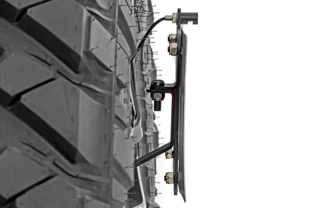 Relocate your license plate for better visibility with Rough CountryΓÇÖs JK License Plate Relocation Kit! The factory JK rear bumper is designed to hold your license plate on the driverΓÇÖs side of the vehicle. However, for anyone upgrading to an aftermarket bumper - or for those who prefer a more symmetrical look - this license plate relocation bracket kit gives you a new place to mount your plate directly on the spare! Each kit features an adjustable arm allowing you to dial in the perfect position closer or further from the spare. An included LED light mounts above the plate for proper visibility and illumination. The entire system mounts securely to your spare with two specially designed lug nut bolts. Each piece is laser cut for a precise fit and powder coated black for a long lifespan of good looks!
