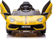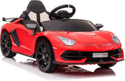 The Licensed Lamborghini Kids Electric Ride On Car with Hydraulic Door is a thrilling and realistic ride-on toy that will captivate young adventurers. This official-licensed upgrade kids rc ride on roadster is a replica of the Lamborghini Aventador SVJ car, complete with swing-up scissor doors and a vibrant color selection of Green, Yellow, or Red. Let your child's imagination soar as they cruise around in style with this electric car for kids.This ride-on car is designed for children ages 3 to 8, making it the perfect choice for kids between 37 and 95 months old. With a maximum loading capacity of 30kg (66lbs), it can accommodate a single passenger comfortably. The overall size of the car is 107.5x63x42cm (42.3x25x16.5inch), providing ample space for your child to enjoy their ride.Powered by two powerful 35W motors and a 12V rechargeable battery, this Lamborghini car for kids offers a thrilling and safe ride. The sturdy and stable construction, along with the 4 wear-proof plastic wheels and comfortable spring suspension system, ensures a smooth and enjoyable ride on various terrains. Your child can experience speeds of 3-5 km/h (1.8-3 mph) for up to 1-2 hours on a single charge, providing endless fun and adventure.The Licensed Lamborghini Kids Electric Ride On Car with Hydraulic Door comes with a range of exciting features and functions. It includes a 2.4G remote control, allowing parents to have full control over the car's movements. The light control switch adds a touch of realism, while the power display keeps you informed about the battery level. The horn sound adds an element of fun, and the high and low-speed options provide versatility for different driving scenarios. The hydraulic doors add a touch of sophistication to the overall design.Safety is a top priority, and this ride-on car is equipped with an auto-reset fuse to protect against electrical issues. Please note that this car is designed for a single passenger and should not be used in traffic. Adult assembly is required, as the car comes in an unassembled state with potentially hazardous sharp points and edges. Please keep it out of reach of babies.The package includes the Licensed Lamborghini Sports Car, DIY Cool Stickers for customization, a 2.4G Remote Control for parental control, a Charger for convenient charging, and a User Manual for easy assembly and operation. The input AC is 100-240V, and the output DC is 12V 1000mA.Let your child's imagination run wild with the Licensed Lamborghini Kids Electric Ride On Car with Hydraulic Door. It's the perfect gift for young thrill-seekers and car enthusiasts. Order yours today and watch your child embark on exciting adventures in their very own Lamborghini ride-on car.