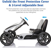 The ergonomic and adjustable high-back seat and front frame can be customized to meet your child's specific needs. Whether they prefer a more upright position or a reclined one, this go kart can accommodate their preferences for optimal comfort. The seat and front frame have two installation positions, allowing you to choose the correct one based on your child's physical size.