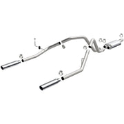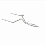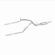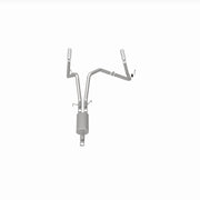 The MagnaFlow 2004-2005 Dodge Ram 1500 Street Series Cat-Back Performance Exhaust System 15863 brings out the personality of your 5.7L 2004-2005 Dodge Ram 1500 with our signature resonant, powerful engine tone and dyno-proven performance. Thanks to its fast-flowing, mandrel bent 3in. main piping and 1 Straight-Through mufflers ending in a Dual Split Rear exit with 3.5in. Polished Clamp-On Single Wall Angle Cut Rolled Edge tips, this Dodge Ram 1500 exhaust kit has the performance chops to match its sporty sound and appearance. Upgrade your ride to the next level with an exhaust that has the pipes to put other Dodge Ram 1500's to shame. With this system your vehicle will be producing Aggressive exterior and Moderate interior sound levels while leaving other cars and trucks feeling envious at every stoplight. Exhaust kit 15863 features a cat-back layout that replaces your ride's stock exhaust components from near the catalytic converter on back. Extensive 3D scanning during development has resulted in a direct-fit design that you can easily install yourself. 15863 is produced using CNC precision robotic manufacturing techniques and is backed by MagnaFlow's 1-year limited finish warranty and limited lifetime construction warranty.