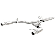 The MagnaFlow 2015-2017 Ford Mustang Competition Series Cat-Back Performance Exhaust System 19101 brings an aggressive, attention-grabbing edge to the deep resonant exhaust note we're so well known for. This exhaust kit is designed to enhance your 5.0L 2015-2017 Ford Mustang with dyno-proven performance made possible thanks to fast-flowing mandrel bent 3in. main piping and 2 Straight-Through mufflers ending in a Dual Split Rear exit with 4.5in. Polished Welded-On Double Wall Angle Cut Folded Edge tips featuring a sporty finish. The exhaust system's cat-back layout replaces your ride's exhaust system from near the catalytic converter on back. Exhaust system 19101 is engineered to make your vehicle's engine produce Aggressive exterior and Moderate interior sound levels, befitting its competition-oriented design. 19101's direct-fit design makes installation a breeze thanks to the use of advanced 3D scanning techniques. This performance exhaust system is made of 100% durable and corrosion-resistant stainless steel and produced using CNC precision robotic manufacturing, all backed by MagnaFlow's limited lifetime warranty. Please check to ensure compliance with local noise regulations.