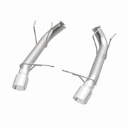 The MagnaFlow 2011-2012 Ford Mustang Race Series Axle-Back Performance Exhaust System 15594 doesn't leave any performance on the table with a race-ready, light weight, dyno-proven design ready to help your 5.0L, 5.4L 2011-2012 Ford Mustang take on any pretenders, whether on the track or the street. Exhaust kit 15594 is engineered to produce our powerful, resonant signature exhaust note at Very Aggressive exterior and Aggressive interior sound levels with an axle-back layout that replaces your vehicle's exhaust components from near the rear axle on back. Please check to ensure compliance with local noise regulations. This Ford Mustang exhaust kit features fast-flowing mandrel bent 3in. diameter main piping that ends in a Dual Split Rear exit with 4in. Polished Welded-On Double Wall Angle Cut Folded Edge tips. Extensive 3D scanning during development and the use of advanced CNC precision robotic manufacturing techniques ensures that 15594's direct-fit design fits so perfectly that you can easily install the system yourself. The durable, corrosion resistant stainless steel construction of exhaust system 15594 is backed by MagnaFlow's limited lifetime warranty.