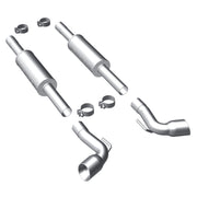 The MagnaFlow 2003-2010 Dodge Viper Street Series Cat-Back Performance Exhaust System 16863 brings out the personality of your 8.3L, 8.4L 2003-2010 Dodge Viper with our signature resonant, powerful engine tone and dyno-proven performance. Thanks to its fast-flowing, mandrel bent 2.5in. main piping and 1 Straight-Through mufflers ending in a Dual Split Side exit with 3.5in. Polished Welded-On Double Wall Angle Cut Folded Edge tips, this Dodge Viper exhaust kit has the performance chops to match its sporty sound and appearance. Upgrade your ride to the next level with an exhaust that has the pipes to put other Dodge Viper's to shame. With this system your vehicle will be producing Moderate exterior and Mild interior sound levels while leaving other cars and trucks feeling envious at every stoplight. Exhaust kit 16863 features a cat-back layout that replaces your ride's stock exhaust components from near the catalytic converter on back. Extensive 3D scanning during development has resulted in a direct-fit design that you can easily install yourself. 16863 is produced using CNC precision robotic manufacturing techniques and is backed by MagnaFlow's 1-year limited finish warranty and limited lifetime construction warranty.