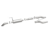 The MagnaFlow Off-Road Pro Series Cat-Back Performance Exhaust System 17107 brings additional off-roading prowess and our deep signature exhaust note to your Truck with a weight-optimized, dyno-tested, corrosion resistant and durable stainless steel design engineered to closely hug the undercarriage for improved ground clearance. Exhaust kit 17107 is engineered to produce Very Aggressive exterior and Aggressive interior sound levels. Extensive 3D scanning was used during the development of this Truck exhaust system to create a direct-fit design, enabling a do-it-yourself installation process. 17107's emissions-legal cat-back design replaces all your truck's exhaust components from the catalytic converter on back with its 3in. diameter mandrel bent main piping that passes through 1 Straight-Through mufflers before ending in a turndown before rear axle exit with 3in. Satin Clamp-On Single Wall Turndown Cut Edge tips. Exhaust system 17107 is produced using advanced CNC precision robotic manufacturing techniques and backed by MagnaFlow's limited lifetime warranty.