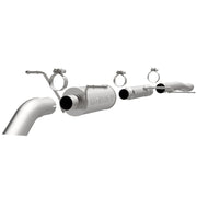 The MagnaFlow Off-Road Pro Series Cat-Back Performance Exhaust System 17102 brings additional off-roading prowess and our deep signature exhaust note to your Truck with a weight-optimized, dyno-tested, corrosion resistant and durable stainless steel design engineered to closely hug the undercarriage for improved ground clearance. Exhaust kit 17102 is engineered to produce Very Aggressive exterior and Aggressive interior sound levels. Extensive 3D scanning was used during the development of this Truck exhaust system to create a direct-fit design, enabling a do-it-yourself installation process. 17102's emissions-legal cat-back design replaces all your truck's exhaust components from the catalytic converter on back with its 3in. diameter mandrel bent main piping that passes through 1 Straight-Through mufflers before ending in a turndown before rear axle exit with 3in. Satin Clamp-On Single Wall Turndown Cut Edge tips. Exhaust system 17102 is produced using advanced CNC precision robotic manufacturing techniques and backed by MagnaFlow's limited lifetime warranty.