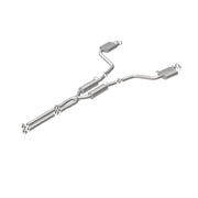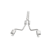 The MagnaFlow 2009-2014 Dodge Challenger Street Series Cat-Back Performance Exhaust System 16514 brings out the personality of your 5.7L 2009-2014 Dodge Challenger with our signature resonant, powerful engine tone and dyno-proven performance. Thanks to its fast-flowing, mandrel bent 2.5in. main piping and 4 Straight-Through mufflers ending in a Dual Split Rear exit, this Dodge Challenger exhaust kit has the performance chops to match its sporty sound and appearance. Upgrade your ride to the next level with an exhaust that has the pipes to put other Dodge Challenger's to shame. With this system your vehicle will be producing Moderate exterior and Mild interior sound levels while leaving other cars and trucks feeling envious at every stoplight. Exhaust kit 16514 features a cat-back layout that replaces your ride's stock exhaust components from near the catalytic converter on back. Extensive 3D scanning during development has resulted in a direct-fit design that you can easily install yourself. 16514 is produced using CNC precision robotic manufacturing techniques and is backed by MagnaFlow's 1-year limited finish warranty and limited lifetime construction warranty.
