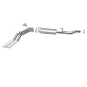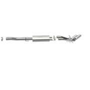 The MagnaFlow Street Series Cat-Back Performance Exhaust System 16868 brings out the personality of your Truck with our signature resonant, powerful engine tone and dyno-proven performance. Thanks to its fast-flowing, mandrel bent 3in. main piping and 1 Straight-Through mufflers ending in a Dual Same Side Before Passenger Rear Tire exit with 3.5in. Polished Welded-On Single Wall Angle Cut Cut Edge tips, this Truck exhaust kit has the performance chops to match its sporty sound and appearance. Upgrade your ride to the next level with an exhaust that has the pipes to put other Truck's to shame. With this system your vehicle will be producing Very Aggressive exterior and Aggressive interior sound levels while leaving other cars and trucks feeling envious at every stoplight. Exhaust kit 16868 features a cat-back layout that replaces your ride's stock exhaust components from near the catalytic converter on back. Extensive 3D scanning during development has resulted in a direct-fit design that you can easily install yourself. 16868 is produced using CNC precision robotic manufacturing techniques and is backed by MagnaFlow's 1-year limited finish warranty and limited lifetime construction warranty.
