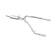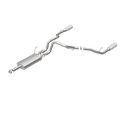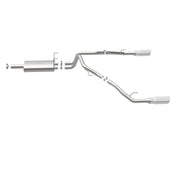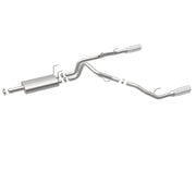 The MagnaFlow Street Series Cat-Back Performance Exhaust System 16869 brings out the personality of your Truck with our signature resonant, powerful engine tone and dyno-proven performance. Thanks to its fast-flowing, mandrel bent 3in. main piping and 1 Straight-Through mufflers ending in a Dual Split Rear exit with 5in. Polished Welded-On Double Wall Angle Cut Rolled Edge tips, this Truck exhaust kit has the performance chops to match its sporty sound and appearance. Upgrade your ride to the next level with an exhaust that has the pipes to put other Truck's to shame. With this system your vehicle will be producing Aggressive exterior and Moderate interior sound levels while leaving other cars and trucks feeling envious at every stoplight. Exhaust kit 16869 features a cat-back layout that replaces your ride's stock exhaust components from near the catalytic converter on back. Extensive 3D scanning during development has resulted in a direct-fit design that you can easily install yourself. 16869 is produced using CNC precision robotic manufacturing techniques and is backed by MagnaFlow's 1-year limited finish warranty and limited lifetime construction warranty.