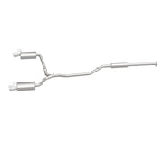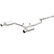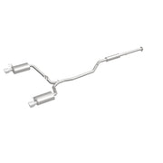 The MagnaFlow 2013-2017 Honda Accord Street Series Cat-Back Performance Exhaust System 19181 brings out the personality of your 3.5L 2013-2017 Honda Accord with our signature resonant, powerful engine tone and dyno-proven performance. Thanks to its fast-flowing, mandrel bent 2.25in. main piping and 3 Straight-Through mufflers ending in a Dual Split Rear exit with 4.5in. Polished Welded-On Double Wall Angle Cut Folded Edge tips, this Honda Accord exhaust kit has the performance chops to match its sporty sound and appearance. Upgrade your ride to the next level with an exhaust that has the pipes to put other Honda Accord's to shame. With this system your vehicle will be producing Moderate exterior and Mild interior sound levels while leaving other cars and trucks feeling envious at every stoplight. Exhaust kit 19181 features a cat-back layout that replaces your ride's stock exhaust components from near the catalytic converter on back. Extensive 3D scanning during development has resulted in a direct-fit design that you can easily install yourself. 19181 is produced using CNC precision robotic manufacturing techniques and is backed by MagnaFlow's 1-year limited finish warranty and limited lifetime construction warranty.