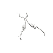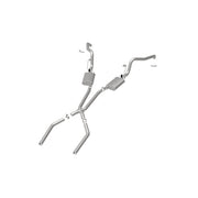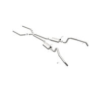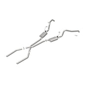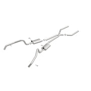 The MagnaFlow Street Series Crossmember-Back Performance Exhaust System 15896 brings enhanced engine sound and dyno-proven performance to your muscle car with a healthy helping of our deep, resonant signature exhaust note at Moderate exterior and Mild interior sound levels. Thanks to its durable, corrosion resistant stainless steel design, this exhaust system will handle whatever tarmac you decide to leave your mark on. This performance exhaust kit features a crossmember-back layout designed to replace your exhaust system from the crossmember on back. With its fast-flowing, mandrel bent 2.5in. main piping and 2 Straight-Through mufflers ending in a Dual Split Rear exit that you can enhance with tips of your choosing, your muscle car will be sounding as awesome as it looks. Extensive 3D scanning during development has resulted in a direct-fit design that you can easily install yourself. 15896 is produced using CNC precision robotic manufacturing techniques and is backed by MagnaFlow's limited lifetime construction warranty.