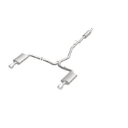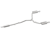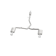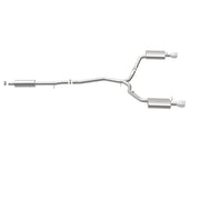 The MagnaFlow 2013-2019 Ford Taurus Street Series Cat-Back Performance Exhaust System 19111 brings out the personality of your 3.5L 2013-2019 Ford Taurus with our signature resonant, powerful engine tone and dyno-proven performance. Thanks to its fast-flowing, mandrel bent 2.5in. main piping and 3 Straight-Through mufflers ending in a Dual Split Rear exit with 4.5in. Polished Welded-On Double Wall Angle Cut Folded Edge tips, this Ford Taurus exhaust kit has the performance chops to match its sporty sound and appearance. Upgrade your ride to the next level with an exhaust that has the pipes to put other Ford Taurus's to shame. With this system your vehicle will be producing Moderate exterior and Mild interior sound levels while leaving other cars and trucks feeling envious at every stoplight. Exhaust kit 19111 features a cat-back layout that replaces your ride's stock exhaust components from near the catalytic converter on back. Extensive 3D scanning during development has resulted in a direct-fit design that you can easily install yourself. 19111 is produced using CNC precision robotic manufacturing techniques and is backed by MagnaFlow's 1-year limited finish warranty and limited lifetime construction warranty.