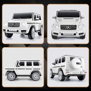 The Mercedes-Benz G500 12V Electric Ride-On Car for Kids - Officially Licensed Motorized Toy is the ultimate dream car for your little ones. With its sleek design and realistic features, this ride-on car will provide hours of fun and excitement. Let your kids experience the thrill of driving their own car, just like adults!Key Features:- Licensed Mercedes Benz G500: This remote control ride on car is a mini version of the iconic Mercedes Benz G-Wagon SUV. With its recognizable grille and stylish design, your child will be cruising in style both indoors and outdoors.- Safety is Top Priority: We understand the importance of keeping your kids safe while they enjoy their ride. That's why this G-wagon electric car features a single seat with an adjustable seatbelt to secure your kids and prevent accidental falls. The dual-lockable doors and emergency brake P button on the remote provide additional protection. Plus, the smart chip ensures soft start/brake functions for comprehensive safety.- Premium Performance: Equipped with four powerful 25W drive motors and a 12V 7AH rechargeable battery, this ride-on car can reach speeds of up to 3.7 mph. The spring suspension device ensures a smooth ride, while the treaded wheels provide exceptional grip on various terrains, including grasslands and asphalt roads. Your child can embark on thrilling driving adventures with absolute confidence.- Happy Music Happy Driving: The fun doesn't stop with just driving. This ride-on car offers USB and AUX connectivity, allowing your kids to play their favorite music while cruising around. It also features an enjoyable back-and-forth rocking mode, adding an extra element of fun to their driving experience.Specifications:- Color: Black/White/Red- Recommended Age: 3-8 years- Material: PP and ABS plastic, metal- Battery Type: 12Volt 7AH- Motor Type: 25W * 4- Maximum User Weight: 80 lb- Speed: 1.8-3.7 mph- Charging Time: 8-12 hours- Run Time: 1.5-2 hours (depending on the child's weight and speed)- Music Function: AUX & USB port/Built-in music- Controller Batteries: 2 AAA batteries (not included)- Overall Size: 45 inch(L) x 23.6 inch(W) x 22 inch(H)- Seat Length: 15.8 inch- Safe Certificate: CPC, ASTM F963 & CPSIAGive your child the gift of a lifetime with the Mercedes-Benz G500 12V Electric Ride-On Car for Kids. They will create cherished and captivating driving memories while developing their cognitive abilities and enjoying parent-child interactions. Order now and watch your child's imagination soar!
