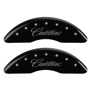 MGP 4 Caliper Covers Engraved F & R Cursive/Cadillac Black Finish Silver Char 2016 Cadillac CT6