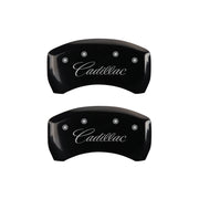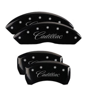 MGP 4 Caliper Covers Engraved F & R Cursive/Cadillac Black Finish Silver Char 2017 Cadillac XT5
