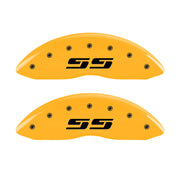 MGP 4 Caliper Covers Engraved F & R Silverado SS Yellow Finish Black Char 2002 Chevy Silverado 1500