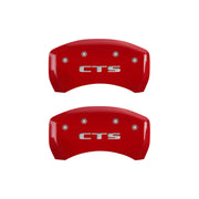 MGP 4 Caliper Covers Engraved Front Cursive/Cadillac Engraved Rear CTS Red finish silver ch
