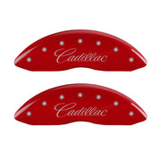 MGP 4 Caliper Covers Engraved Front Cursive/Cadillac Engraved Rear CTS4 Red finish silver ch