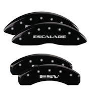 MGP 4 Caliper Covers Engraved Front Escalade Engraved Rear ESV Black finish silver ch