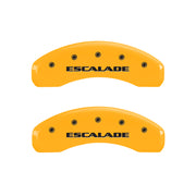 MGP Caliper Covers are a car accessory designed and manufactured specifically for your 2007-2020 Cadillac Escalade to cover up and hide those ugly brake calipers. These aluminum caliper covers are finished with a high-quality powder coat. MGP caliper covers will enhance your wheel appearance and curbside appeal with either black, yellow or red caliper covers. MGP Brake Caliper Covers are tested for safety fitment and are licensed by major manufacturers.