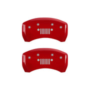 MGP 4 Caliper Covers Engraved Front JEEP Engraved Rear JEEP Grill logo Red finish silver ch