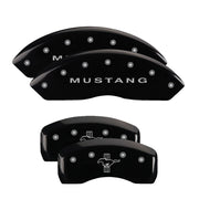 MGP 4 Caliper Covers Engraved Front Mustang Engraved Rear Bar & Pony Black finish silver ch