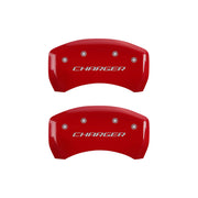MGP 4 Caliper Covers Engraved Front & Rear Block/Charger Red finish silver ch
