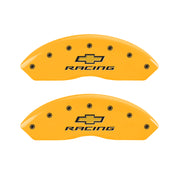 MGP 4 Caliper Covers Engraved Front & Rear Chevy Racing Yellow Power Coat Finish Black Characters