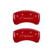 MGP 4 Caliper Covers Engraved Front & Rear Cursive/Challenger Red finish silver ch