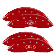 MGP 4 Caliper Covers Engraved Front & Rear Oval logo/Ford Red finish silver ch