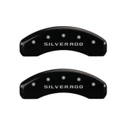 MGP 4 Caliper Covers Engraved Front & Rear Silverado Black finish silver ch
