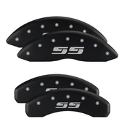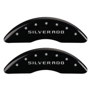 MGP 4 Caliper Covers Engraved Front & Rear Silverado Black finish silver ch
