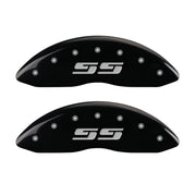 MGP 4 Caliper Covers Engraved Front & Rear Silverado style/SS Black finish silver ch