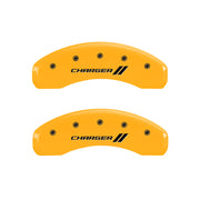MGP 4 Caliper Covers Engraved Front & Rear With stripes/Charger Yellow finish black ch