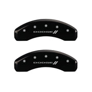 MGP 4 Caliper Covers Engraved Front & Rear With stripes/Dodge Black finish silver ch