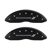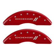 MGP 4 Caliper Covers Engraved Front & Rear With stripes/Dodge Red finish silver ch