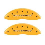 MGP Front set 2 Caliper Covers Engraved Front Silverado Yellow finish black ch